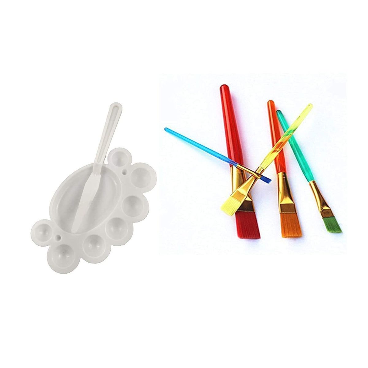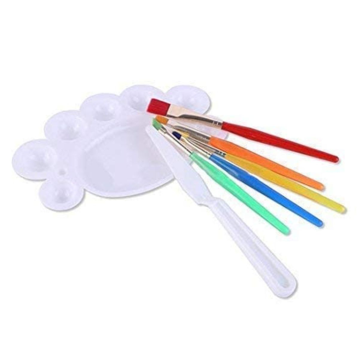 Qatalitic Kids 7 Pcs Painting Brush Set - 5 Pcs Nylon Bristles Brush,1 Pc Palette & 1 Pc Knife for Oil, Gouaches & Acrylic