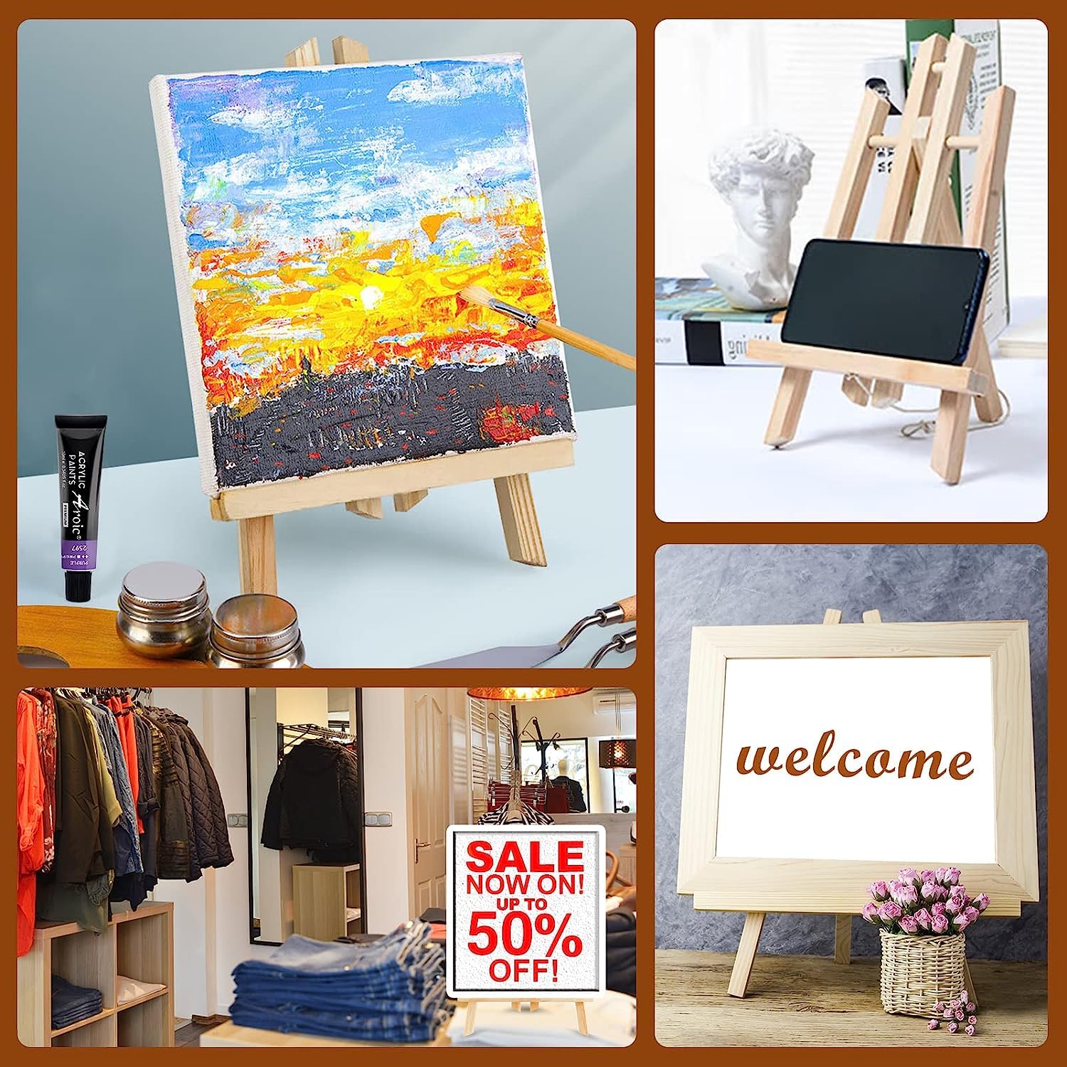 Qatalitic 12 Inches Wooden Easel, Tabletop A-Frame for Artist Painting Mini Canvas, Business Card Display, Students Kids, and Displaying Photos