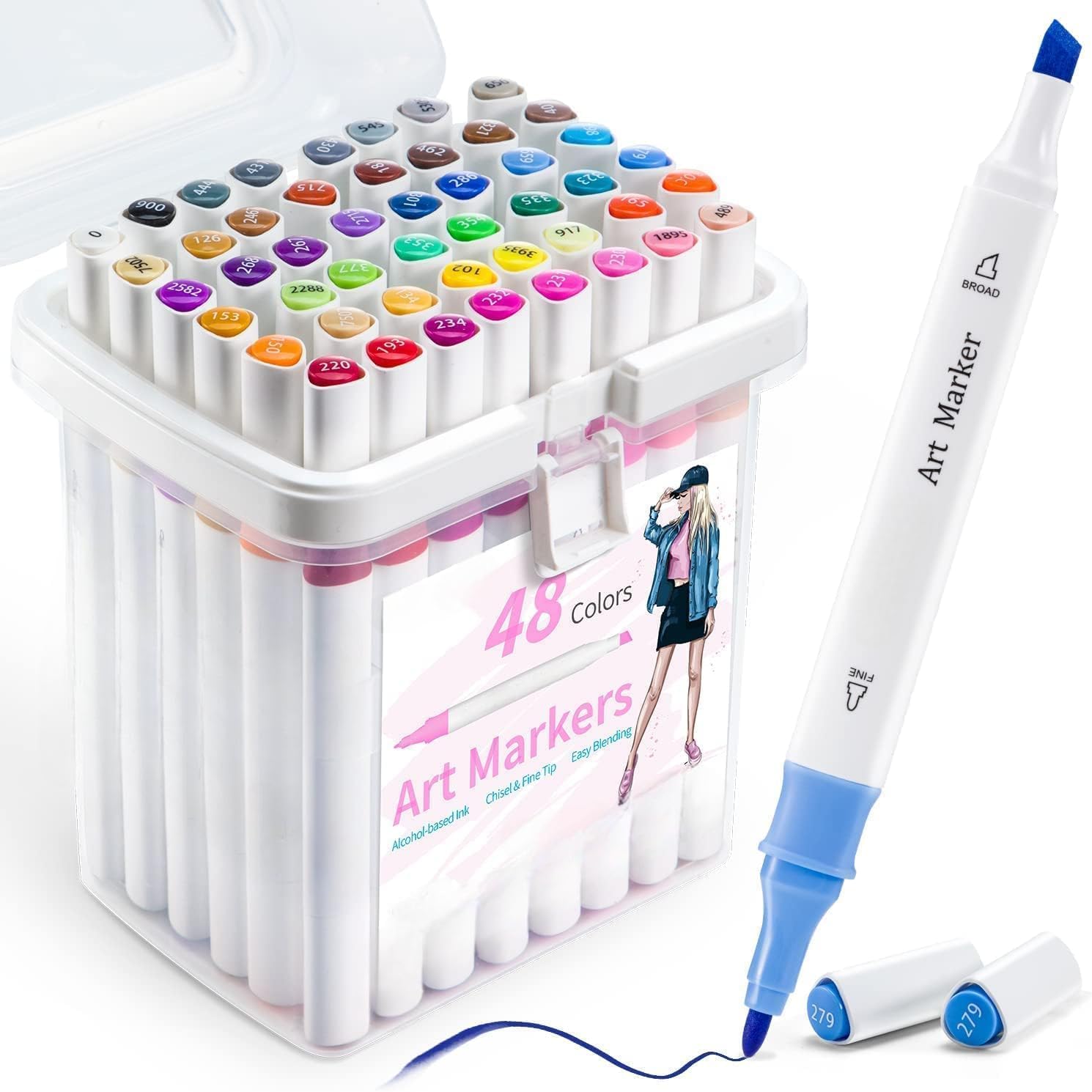 - 48 VIBRANT COLORS: The rainbow is at your fingertips - choose from 48 brilliant colors and bring your ideas to life. Whether it's a coloring book or a masterpiece in the making, your artwork is sure to shine with these art markers.