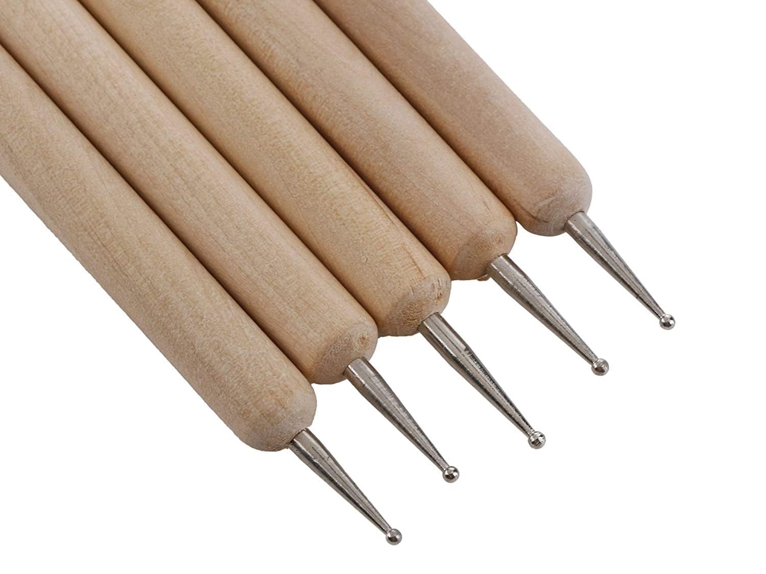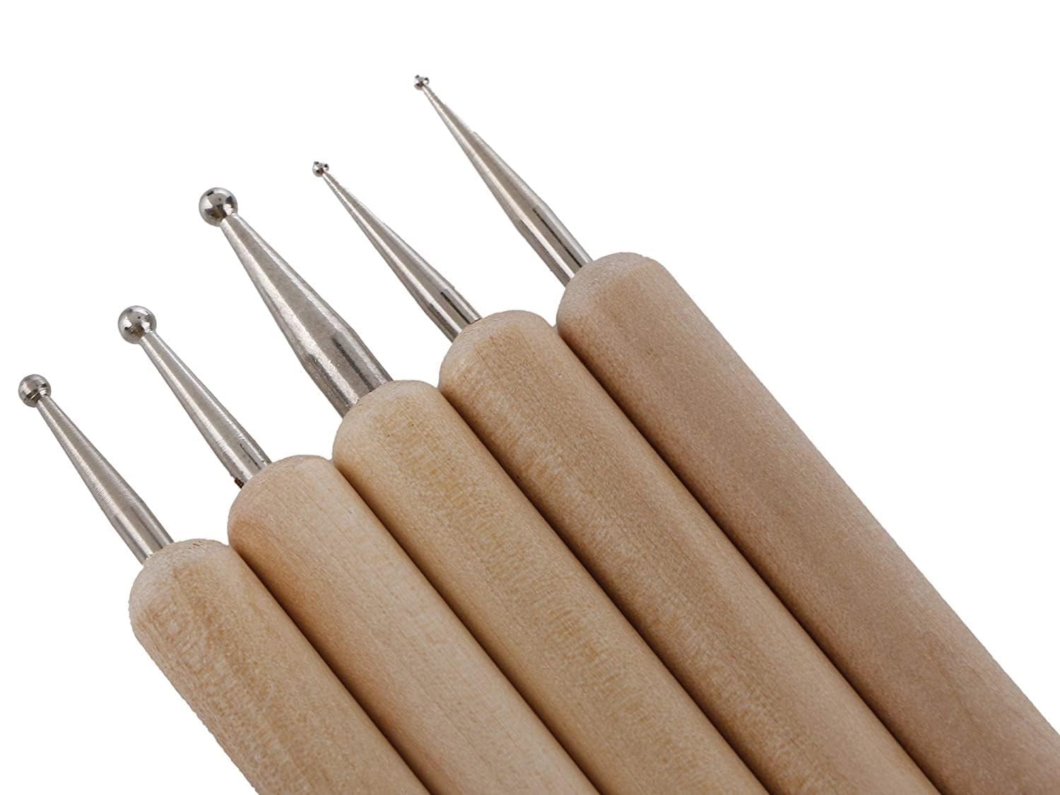 Qatalitic 5 Piece Wooden Dotting Tool Set, Double Ended Steel Ball Stylus for Mandala Art, Clay, Pottery, Ceramic, Nail Art and Sculpting Tools
