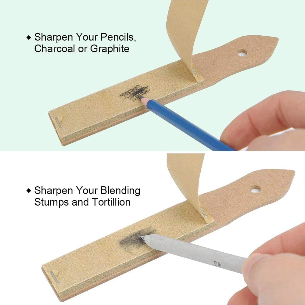 - Quantity: 6 pieces of double ended stumps , 1 piece of pencil sandpaper pointer, 1 piece of kneadable rubber eraser