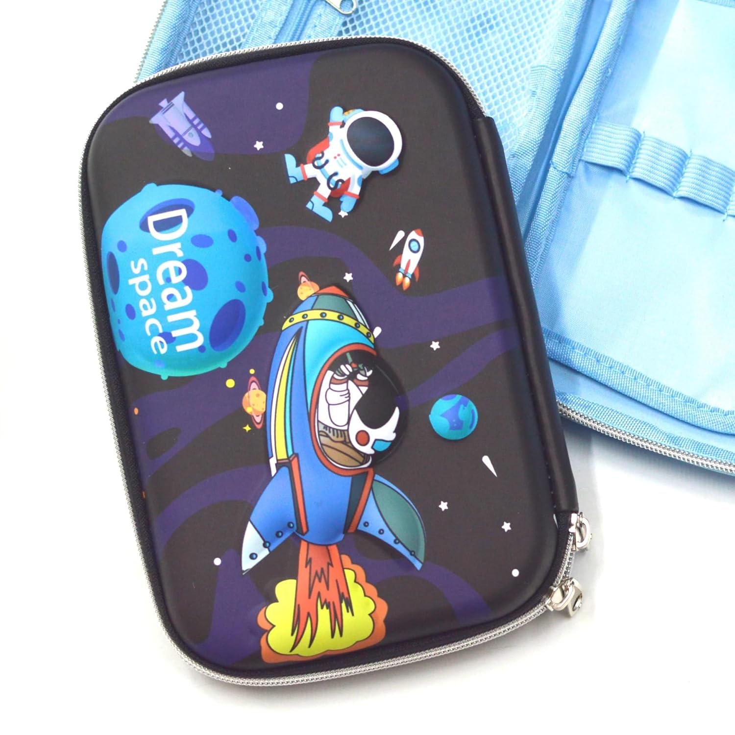 - EVA MATERIAL & EMBROSSED HARDTOP: This carrying pencil case is made of durable and stylish EVA material, compressive, shockproof, waterproof, all-round protection of stationery. Each of cute pencil case comes with an embossed Space Astronaut pattern on the front that gives a vivid look and make your kid happy.