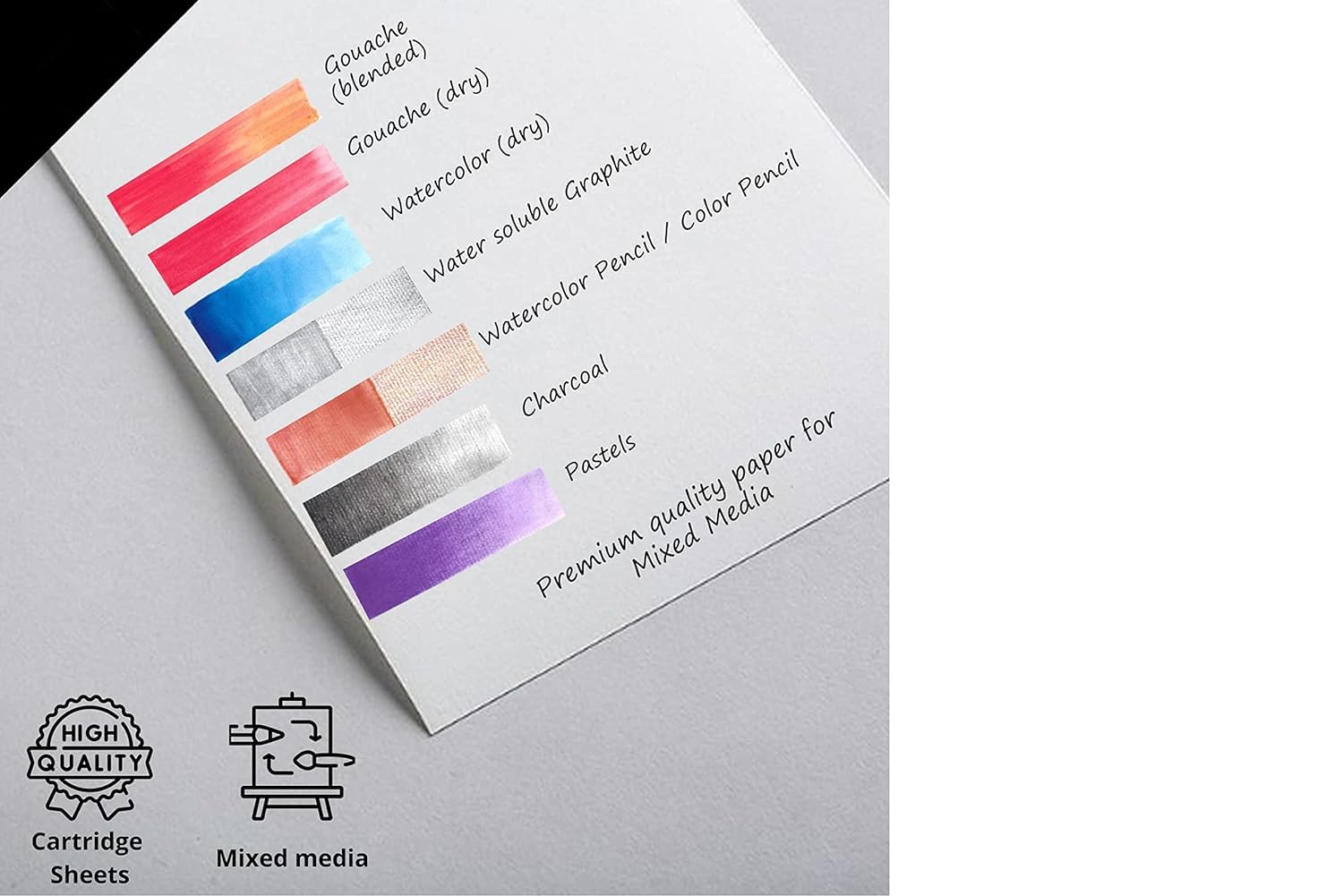- Enhanced for both Dry and Wet Media: Get creative with your choice of medium with these art papers. Suitable for charcoal, pencil, graphite, gouache, watercolor, acrylic, pen & ink