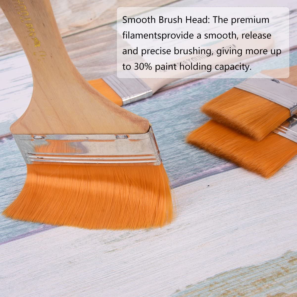 Qatalitic Natural Finish Synthetic Flat Paint Brushes of 4 Pc, Acrylic Oil Gouache Artist Student Paint Colors Brushes Size Orange bristles( 18 mm,1 inch, 1.5 inch & 2 inch)
