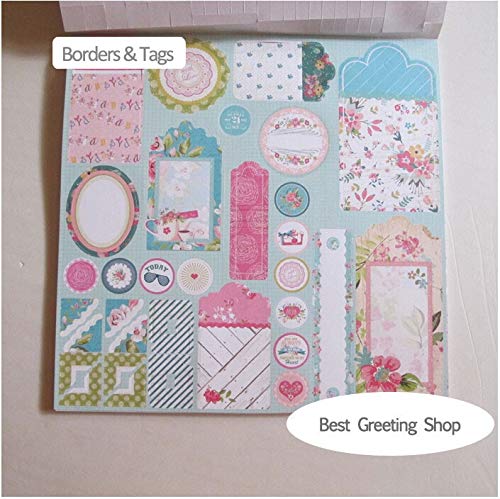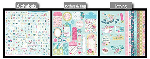 - Set of 24 (12 Designs X 2 Sheets each) Pattern Design Printed Papers for Art & Craft + 3 Die-Cut Paper Sheets with Cutouts, including alphabets, borders, tags and icons<br>