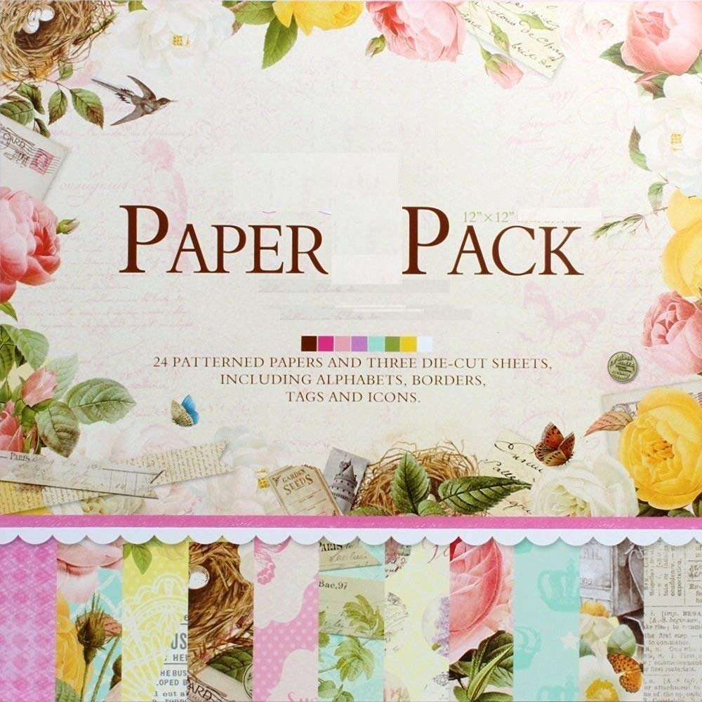 - Set of 24 (12 Designs X 2 Sheets each) Pattern Design Printed Papers for Art & Craft + 3 Die-Cut Paper Sheets with Cutouts, including alphabets, borders, tags and icons