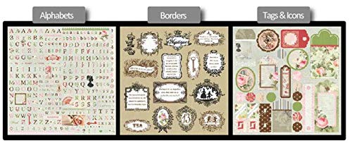 - Set of 24 (12 Designs X 2 Sheets each) Pattern Design Printed Papers for Art & Craft + 3 Die-Cut Paper Sheets with Cutouts, including alphabets, borders, tags and icons