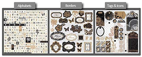 - Set of 24 (12 Designs X 2 Sheets each) Pattern Design Printed Papers for Art & Craft + 3 Die-Cut Paper Sheets with Cutouts, including alphabets, borders, tags and icons