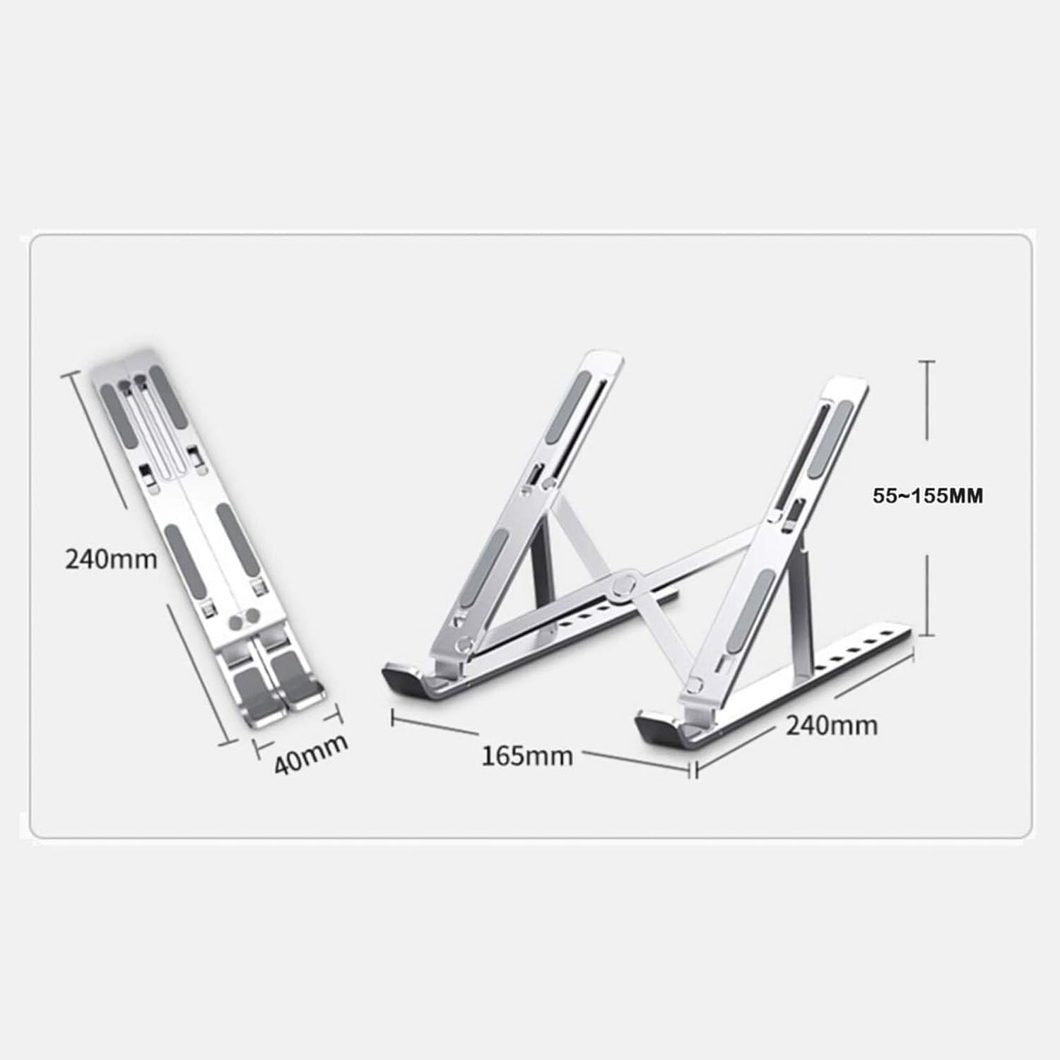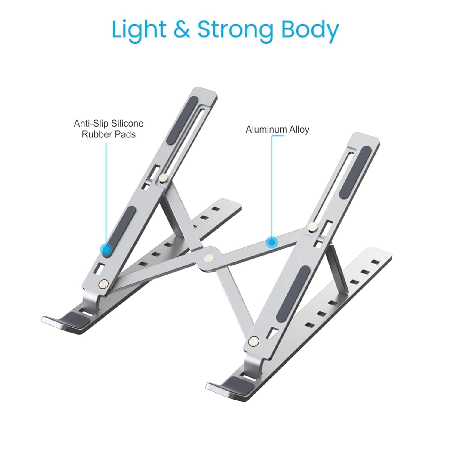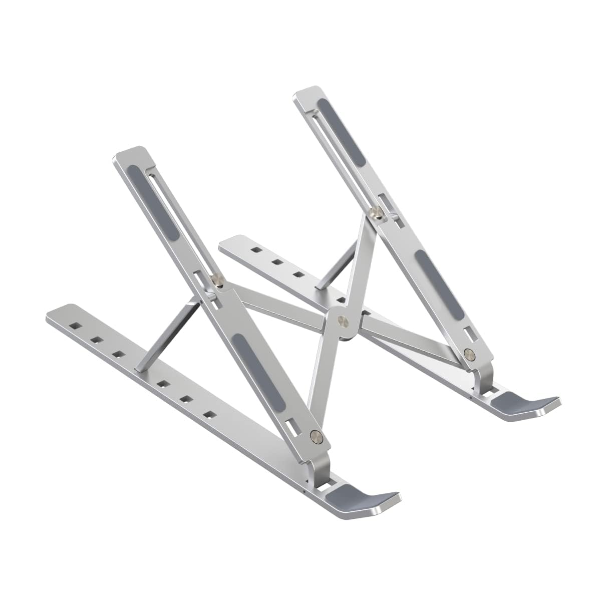 Qatalitic Portable Metal Frame Laptop Stand Holder, Multi Level Adjustable Aluminum Ergonomic Foldable Stand, OverHeating Protection for All Laptops and for Multifunction Use (Silver)