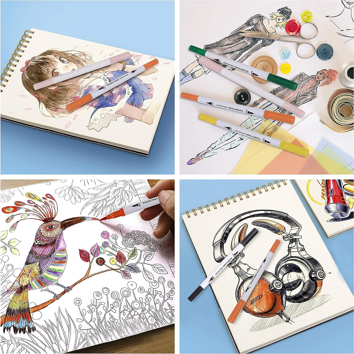 - These dual tipped marker pens are a must-have for your next masterpiece. Use the brush tip for coloring, shading, and blending, and the fine tip for smaller details. You can do it all with one marker!
