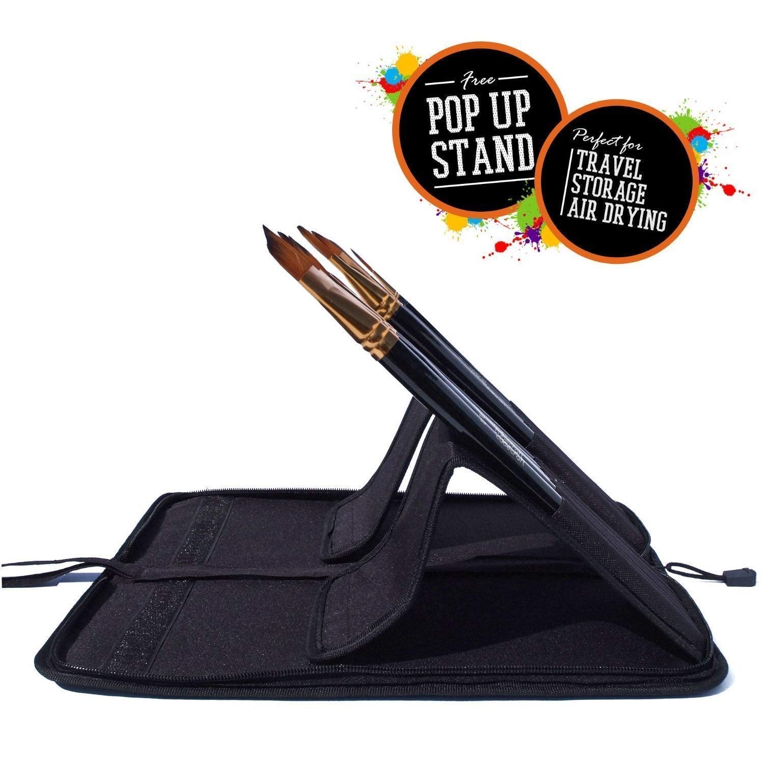 - CARRY CASE WITH POP-UP STAND : More than just a convenient storage solution, the carry case can be used as a pop-up stand that lets you easily swap out brushes while you work. The carry case can also be folded shut and put safely in your backpack or carry bag. Two sponges and a palette knife as free accessories for better painting work.