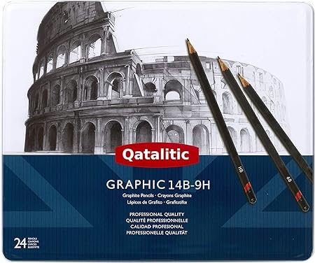 Qatalitic Set of 24 Sketching Pencils for Drawing and Fine Art, for Students, Professionals and Artists