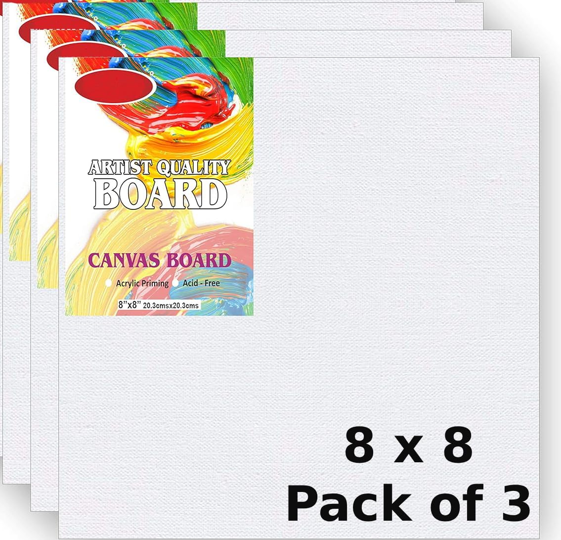 Qatalitic Set of 3 pc. 8 x 8 inch Canvas Board, 100% Cotton, Acid Free, Blank White Mini Canvases for Oil, Acrylic & Watercolour Paint