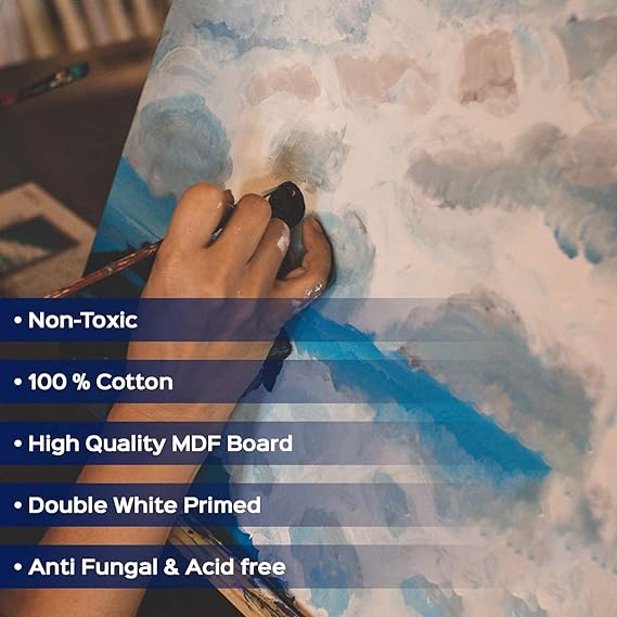 - Double-coated gesso primer enhances the brightness of the artwork. Suitable for Acrylic, Oil paints and even Poster Colours.
