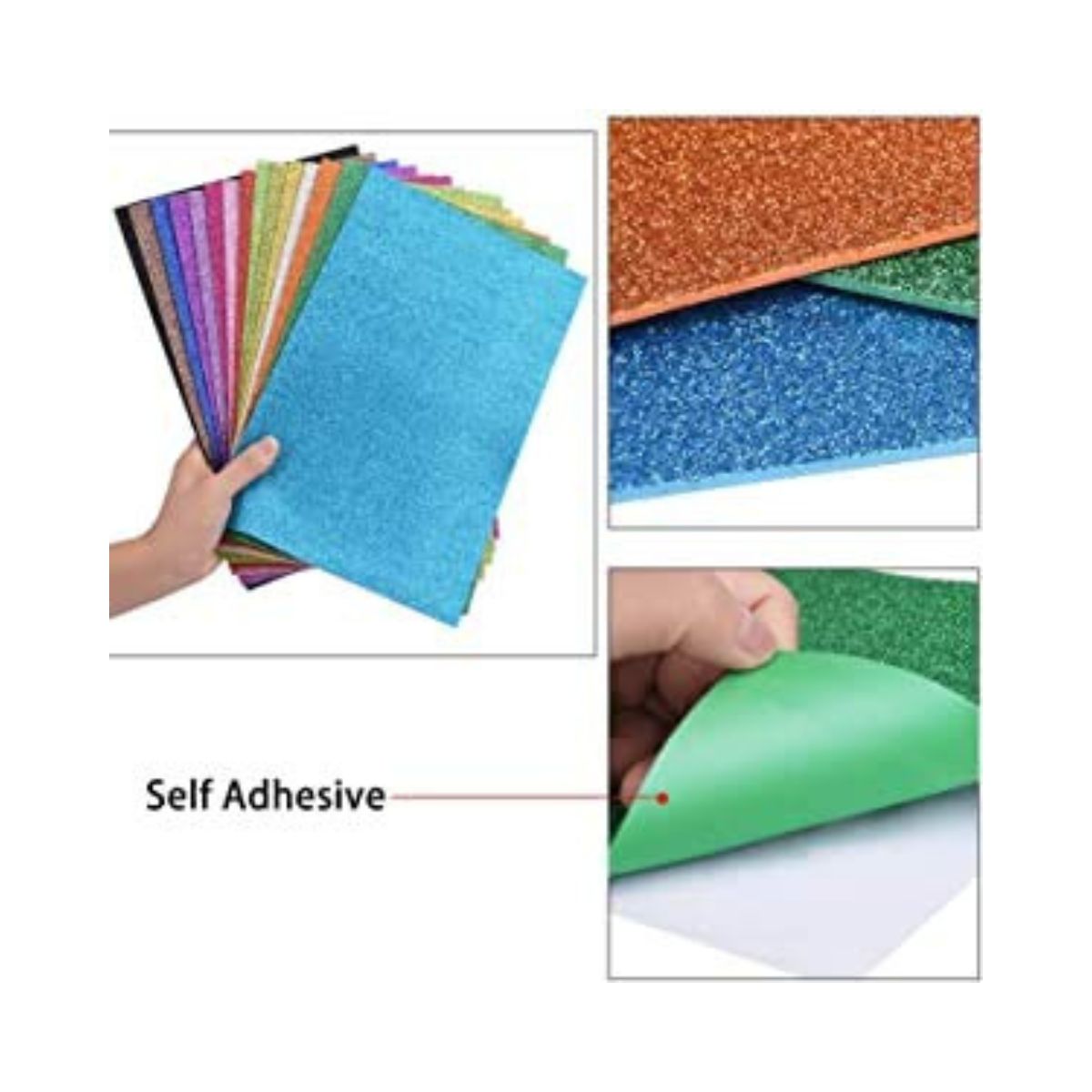 - Size: 30 x 20 cm. Package Contains Pack of 10 Easy to Peel Self Adhesive A4 Glitter EVA Foam Sheets in Assorted Colors.