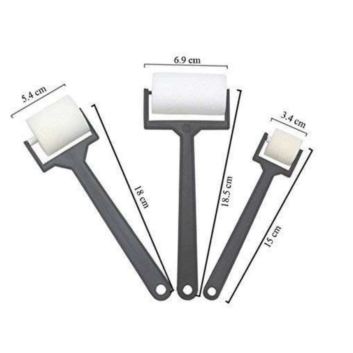 Set of 3 Plain Foam Roller Brushes for Painting, Art and Craft Projects