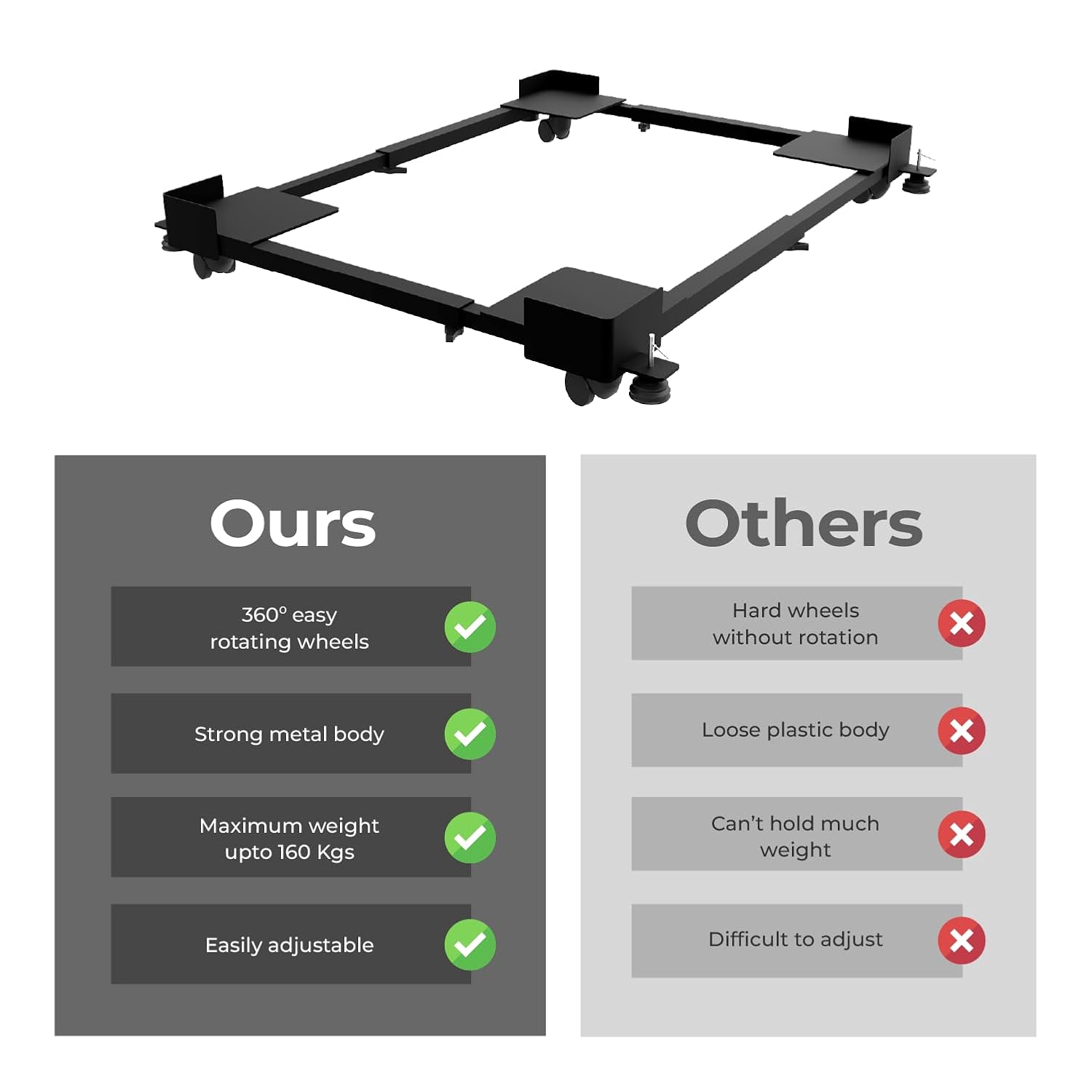 Veriexpress Universal & Adjustable Metal Washing Machine Stand (5 KG to 12 KG) | Trolley with Wheels | Single/Double Door Fridge Stand, Air Cooler Stand | 170 KG Capacity, 4 Anti Vibration Pads |Refrigerator stand with Wheels|Dishwasher Stand Trolley