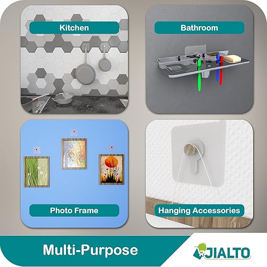 - {SELF ADHESIVE HOOKS} This Damage-free hooks, Up to 10 Kg per utility hook on wall & ceiling, No nail needed. Super waterproof and oilproof, high and low temperature resistance.