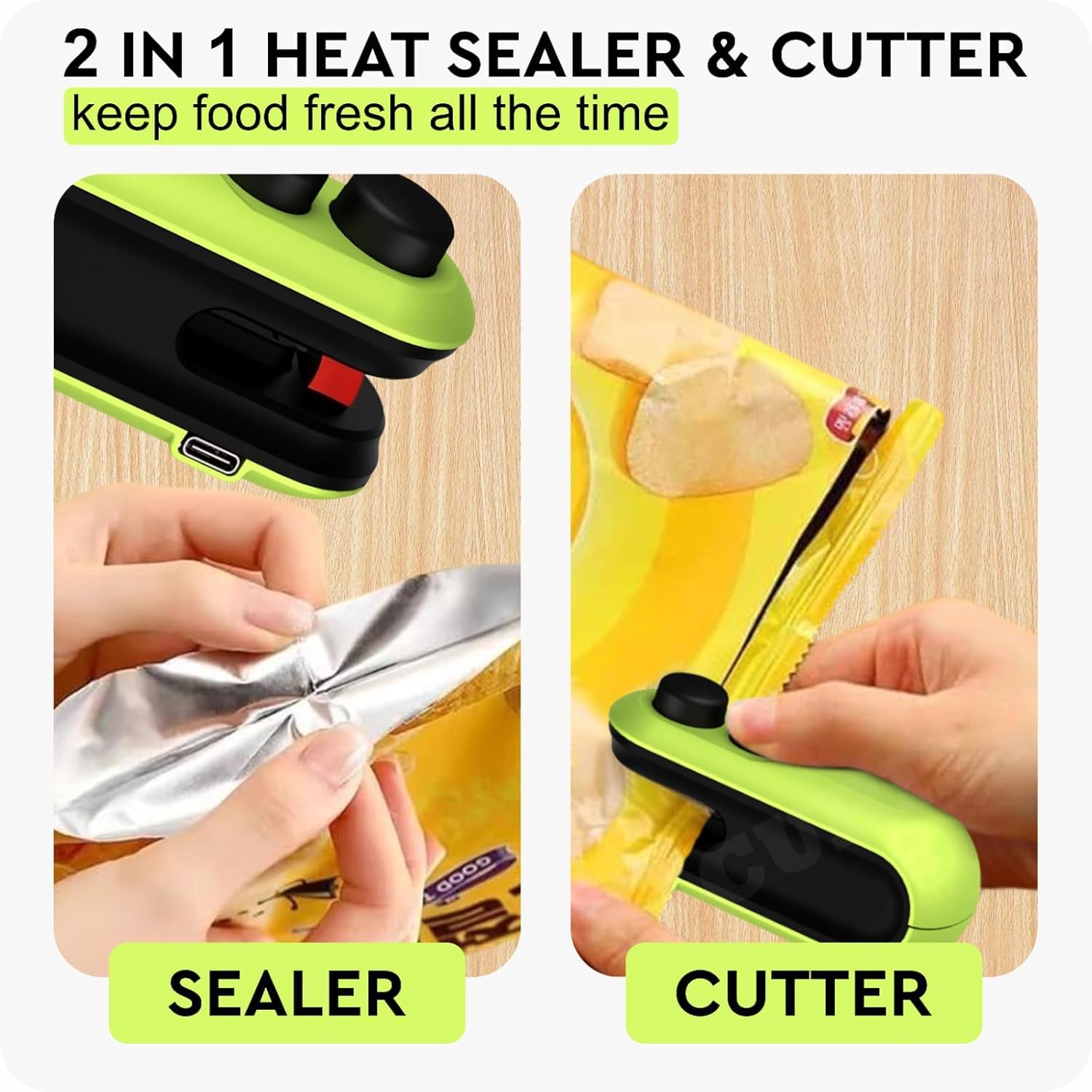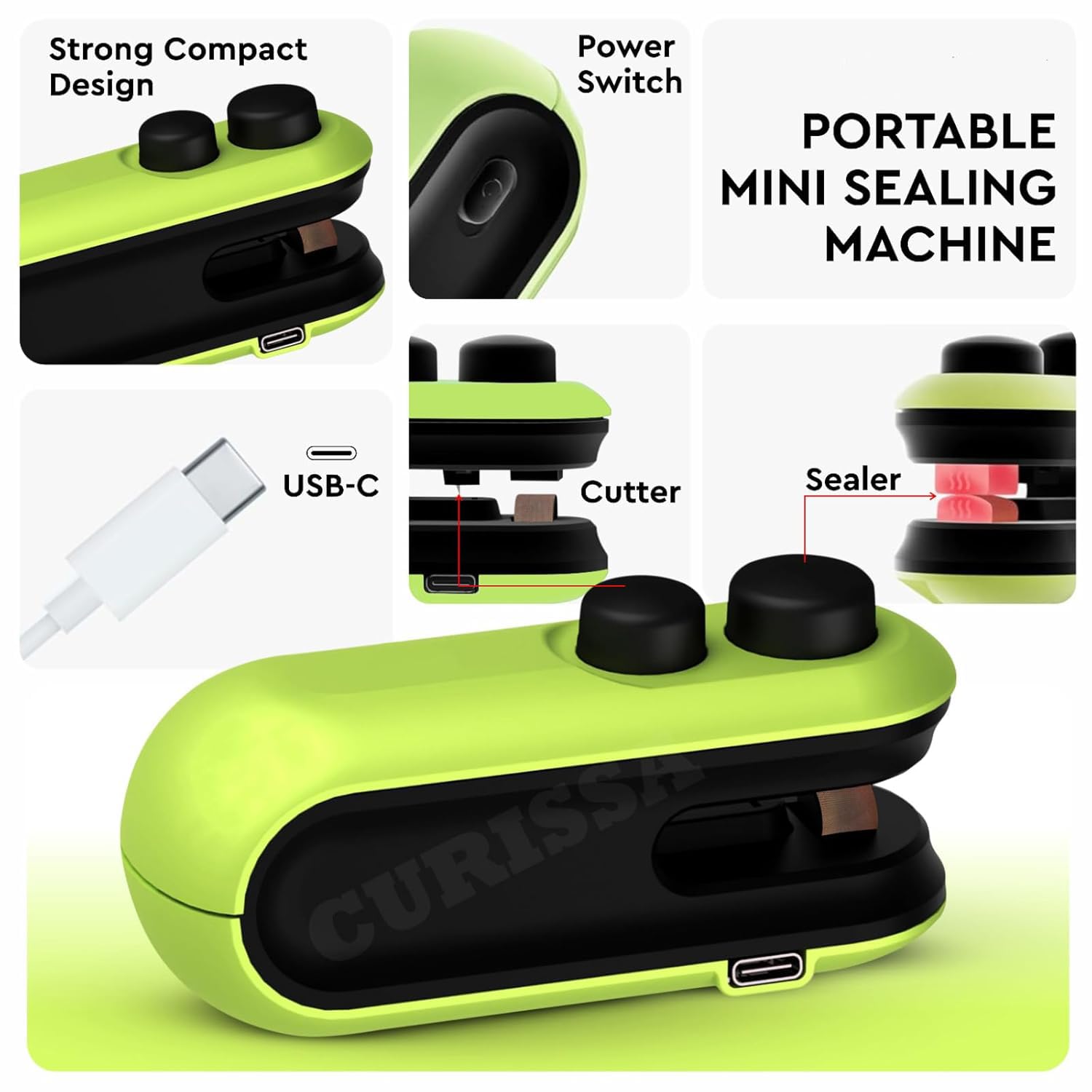 VeriXpress Portable Mini Sealing Machine, 2 in 1 USB Rechargeable Magnetic Heat Sealing & Cutting, for Food, Snacks, Chips, Fresh Storage, Plastic Bags Sealing Machine 1 YEAR Warranty (Green)