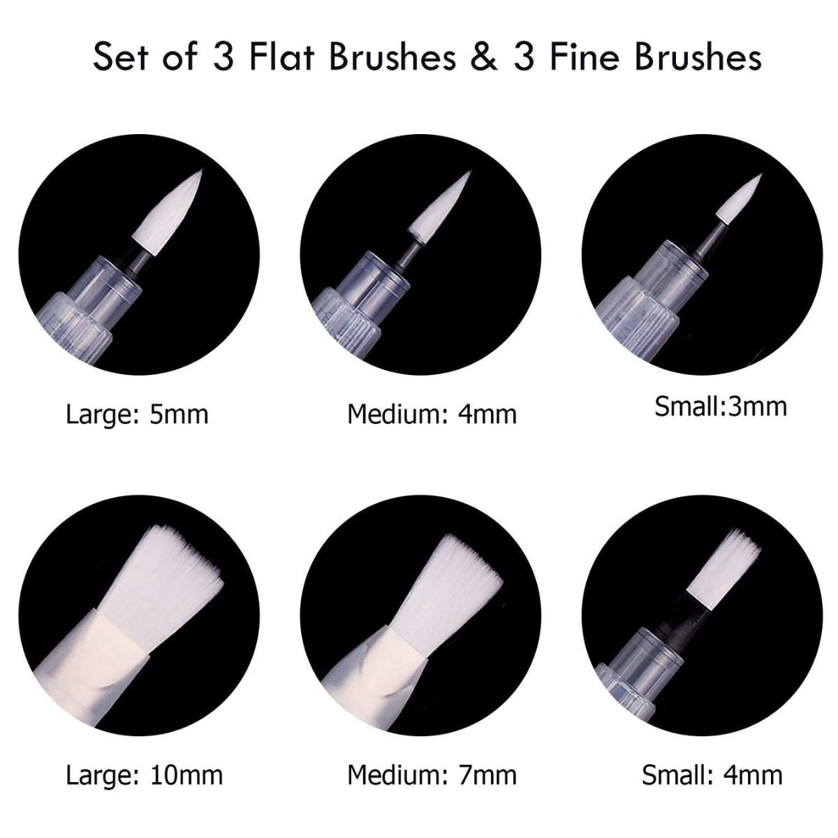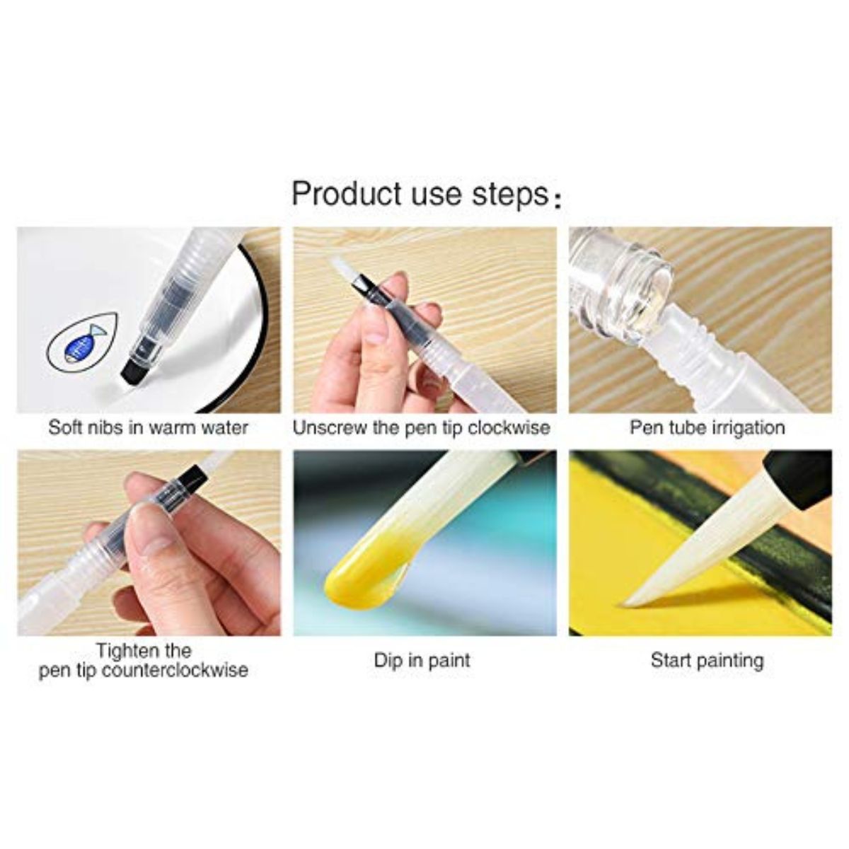 - Qatalitic Water Brush Pens Set of 6 Sizes comes with 3 different shapes/sizes brush tips refillable water brush pen for color drawing, painting, illustration and calligraphy. Moisture Adjustment : Initially, Squeeze The Pen Nib Before You Use, It Will Effluent And You Can Wipe With A Paper Towel, Adjust The Water Contents